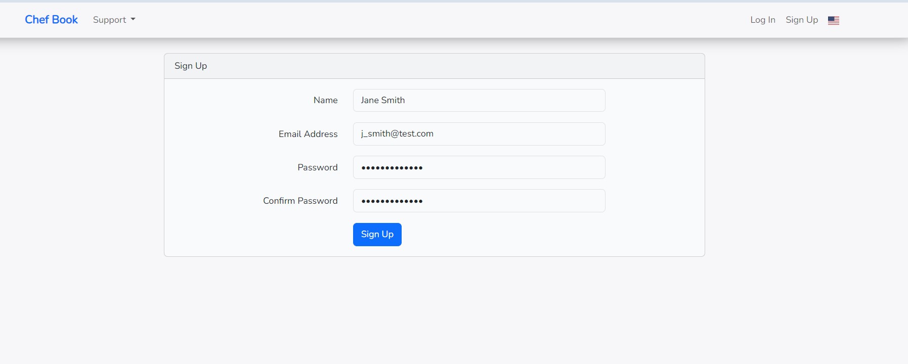 Please fill out this form and click the "Sign Up" button to complete the registration process.