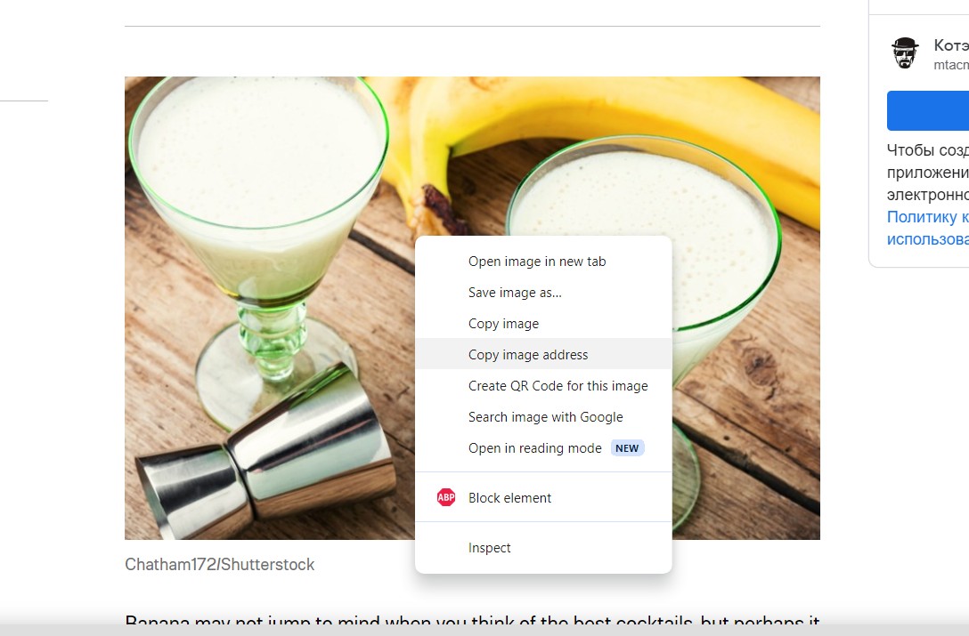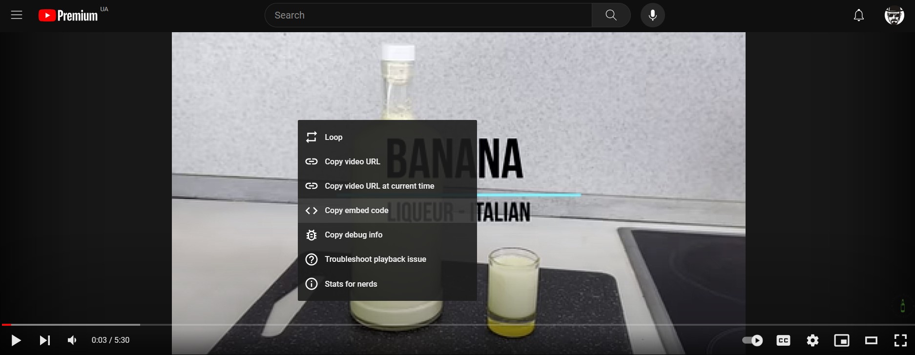 Open the video on the YouTube service for which you want to add a link to the recipe. In the video window, right-click and select "Copy embed code".