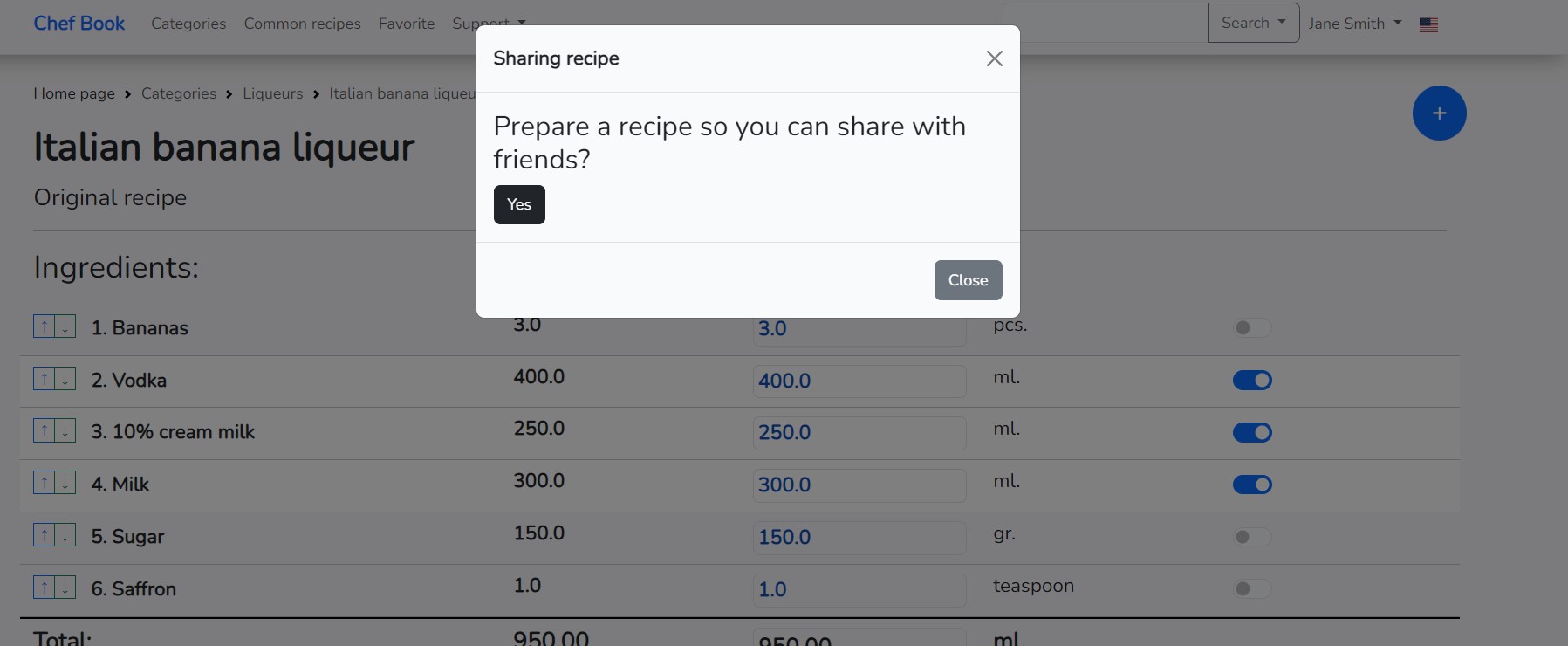 Confirm your choice, and you will receive the recipe with new data on the quantity of ingredients.