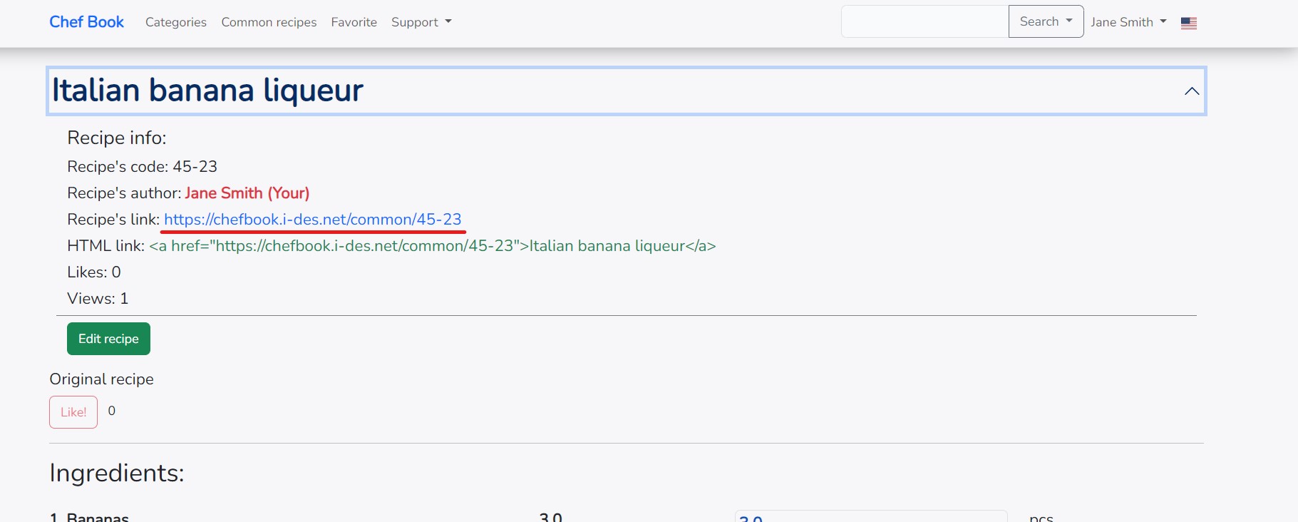The appearance of the recipe has changed slightly. A red stripe has appeared under the recipe name, indicating that this recipe becomes public for all users of the site, and will also be visible via a link even to unregistered users.